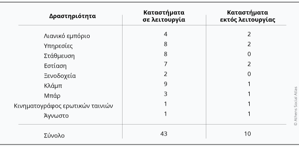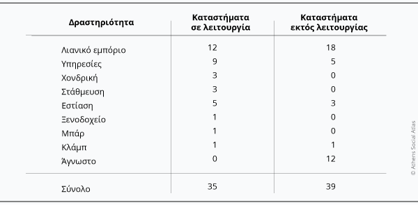 Πίνακας 2: Καταγραφή ισόγειων καταστημάτων στο αριστερό τμήμα του δρόμου