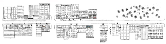 Σηκώνοντας το βλέμμα, ο επισκέπτης μπορεί να δει πολυώροφα κτίρια, προϊόντα της αντιπαροχής, άνω των τριών ορόφων (χάρτης 10) , ενώ τα περισσότερα ανακαινισμένα κτίρια βρίσκονται σε αυτήν την πλευρά.