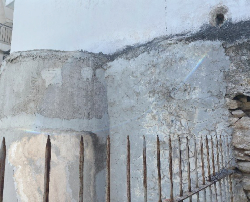 Eικόνες 3 & 4: Απομεινάρια του τείχους των φυλακών των Βούρλων σε μηχανουργείο