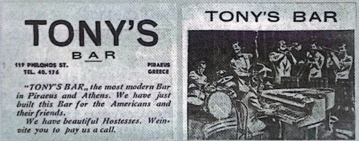 Εικόνα 6: διαφημιστικό έντυπο της δεκαετίας 1960, μπαρ Tony’s, Φίλωνος 122
