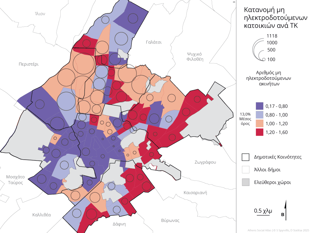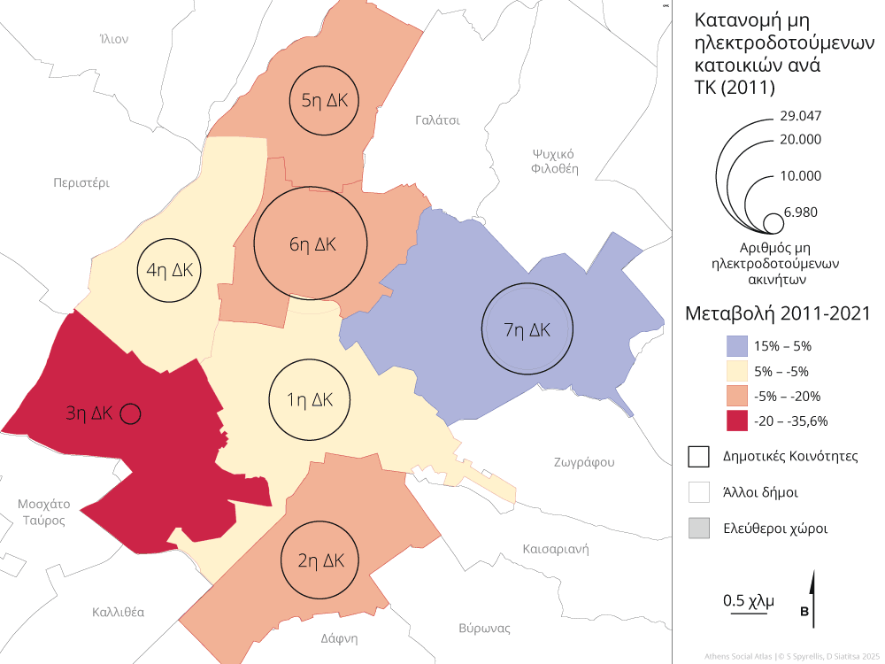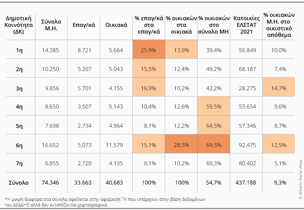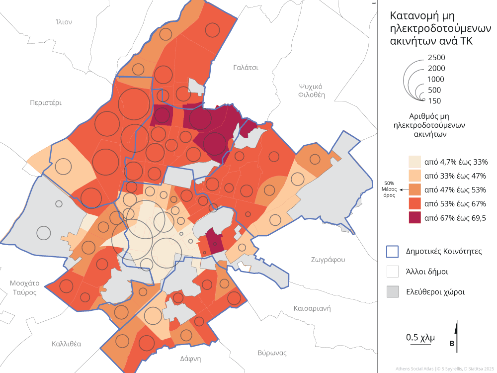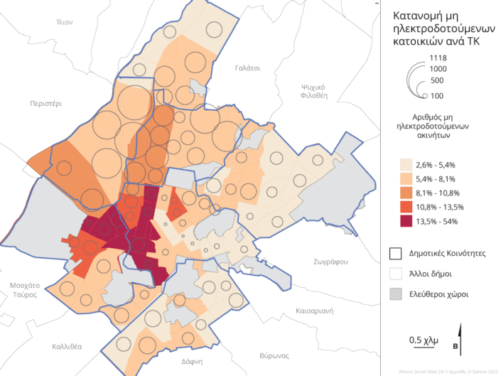 Πηγή: Δήμος Αθηναίων (στοιχεία ΔΕΔΔΗΕ), Σεπτεμβριος 2025 και ΕΛΣΤΑΤ 2021